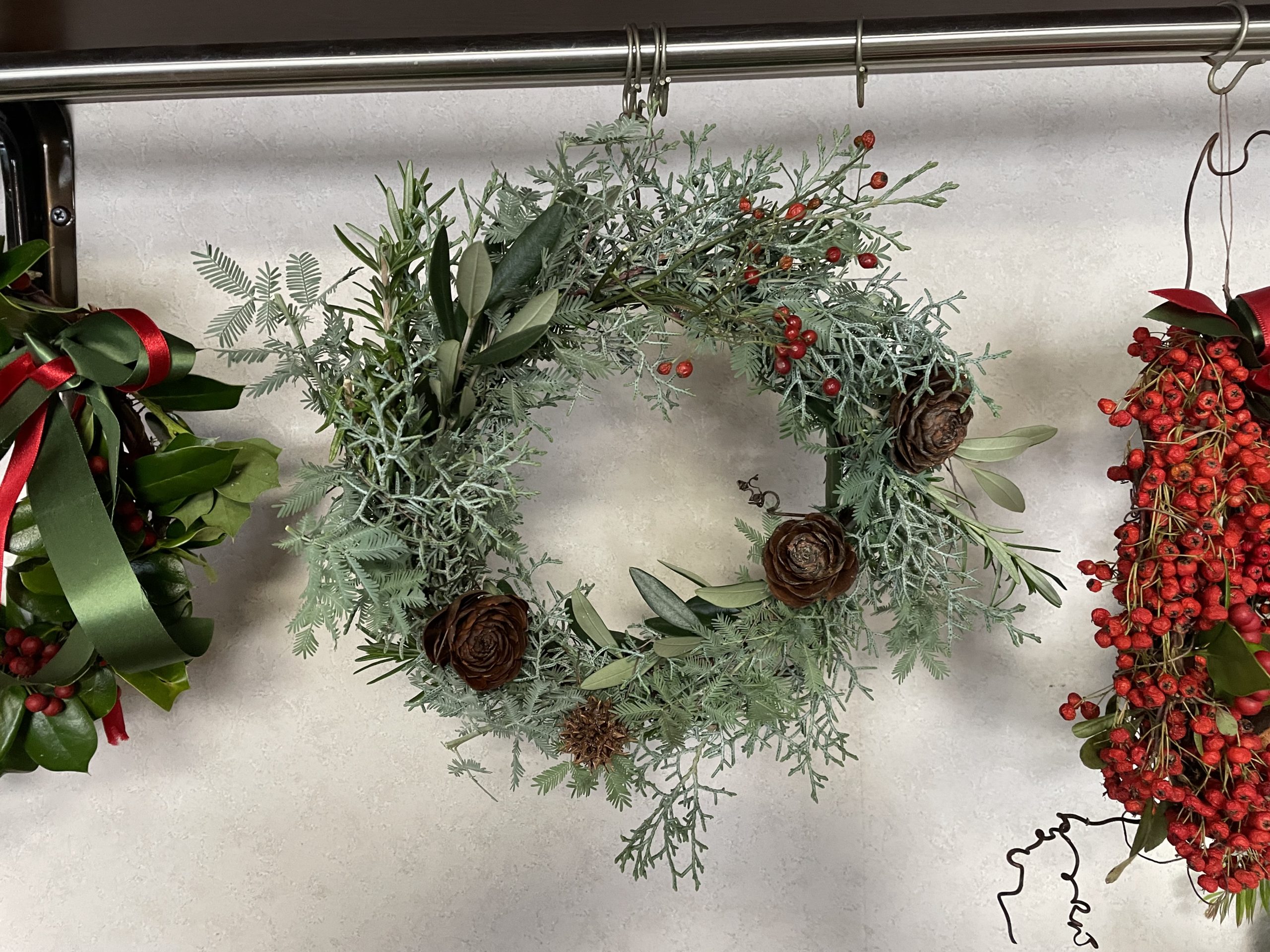 15日から、フレッシュクリスマスリース、お正月スワッグ、苔玉、販売します